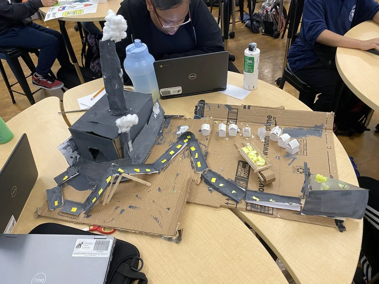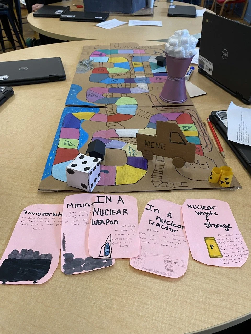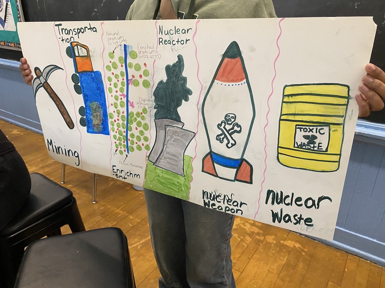 Finally, the students created their own model of the nuclear fuel cycle, either as visual models, written models, or games. In collaboration with art college students at the School of the Art Institute of Chicago (SAIC), students worked on creative projects to express the impact of the nuclear fuel cycle on humans and on the environment.